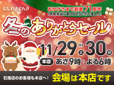 今年も大変お世話になりました。感謝の気持を込めて「ありがとうセール」を開催いたします。